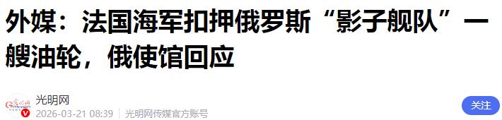 外媒:法国海军扣押俄罗斯“影子舰队”一艘油轮,俄使馆回应