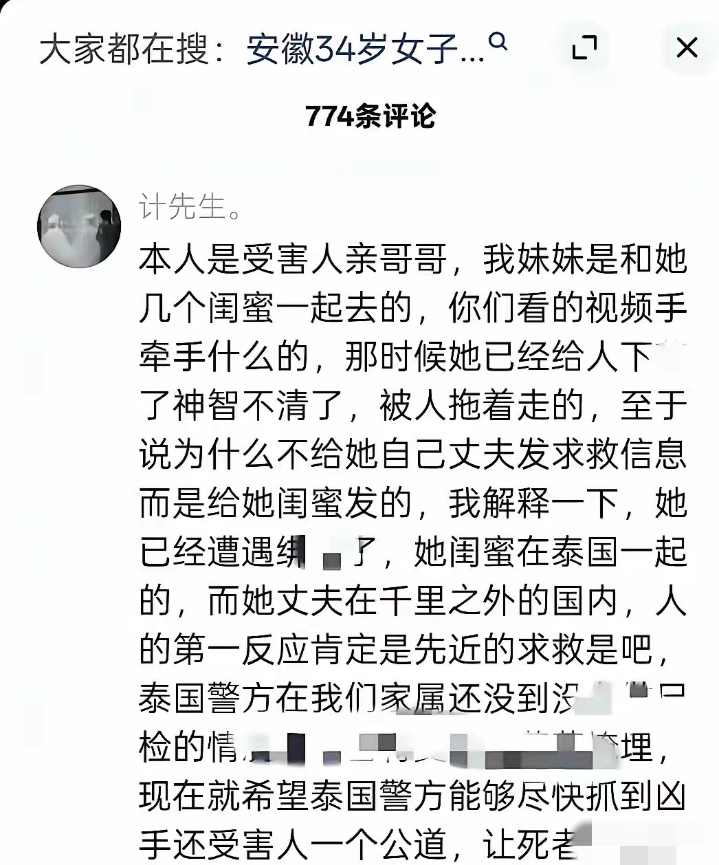 她哥哥解释了,说妹妹是和闺蜜一起去的泰国,事发时闺蜜人在那边,离得近,能第一时间帮忙。