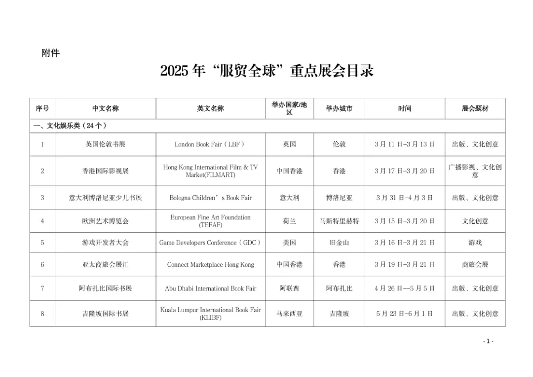 支持服务贸易企业参加2025年“服贸全球”重点展会。