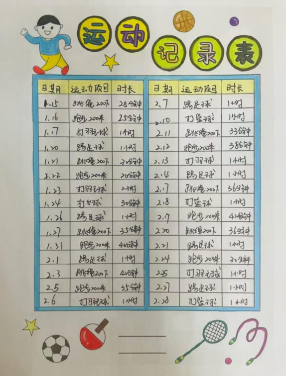 在这段时间里,我主要负责陪伴小学生完成跑步和仰卧起坐两项运动,同时做好运动指导与安全保障。十天的朝夕陪伴,我们一起运动打卡,小朋友的运动能力大幅提高,也养成了每日坚持运动的好习惯。此次活动不仅拉近了我与小朋友的距离,更让我明白了责任与陪伴的重要性。这是一次双向成长的经历,我会把这份收获带到生活中,坚持运动,传递正能量。