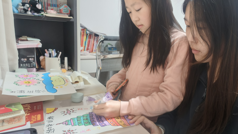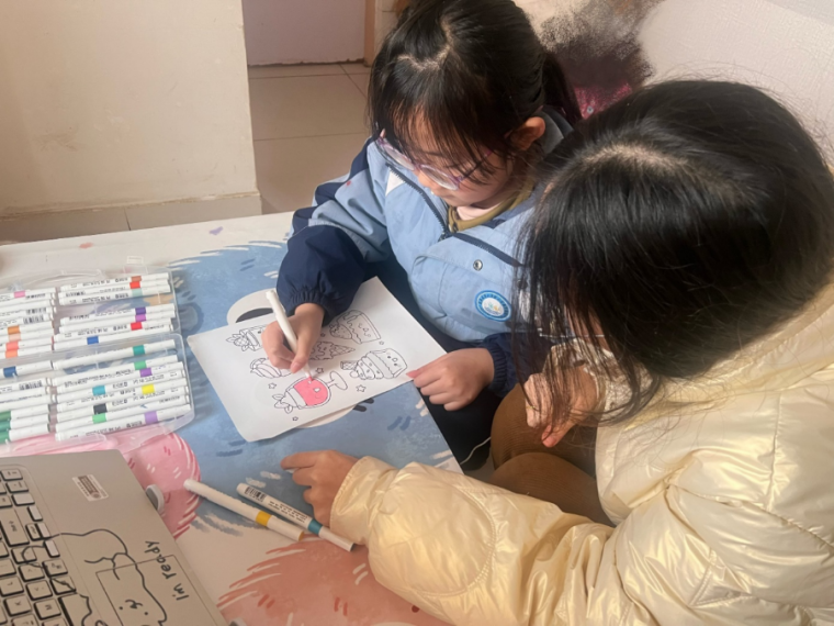 这次云端美育课,我最大的感受是专注带来的双向治愈。我结合自己的专业准备了色彩实践和涂鸦内容,通过屏幕一步步带着她尝试。看着她从一开始不敢下笔,到后来主动和我讲画里的小细节,能明显感受到她的放松和自信。课后,我与她讨论作品,听她说画里的小房子是她头脑想象中的。我发现比起技巧的传授,这种陪伴和倾听,反而让我和她都收获了更纯粹的快乐。