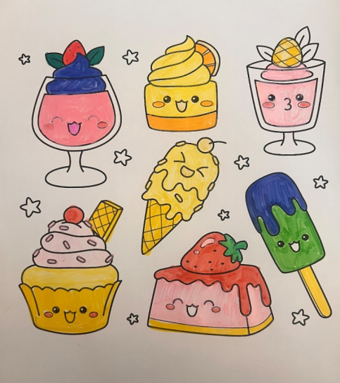 本次美育课以冰淇淋为主题,我先引导小学生观察不同造型、色彩搭配,再鼓励她自由发挥创意。孩子兴致高昂,画出彩虹甜筒、卡通蛋筒等多样款式,还主动添上糖果、小饼干装饰。我适时指导其涂色技巧,尊重她的奇思妙想,看着孩子完成作品时雀跃的模样,我十分动容。这次实践让我学会用童趣主题激发创作欲,也体会到美育重在守护想象力,更锻炼了我的沟通能力。