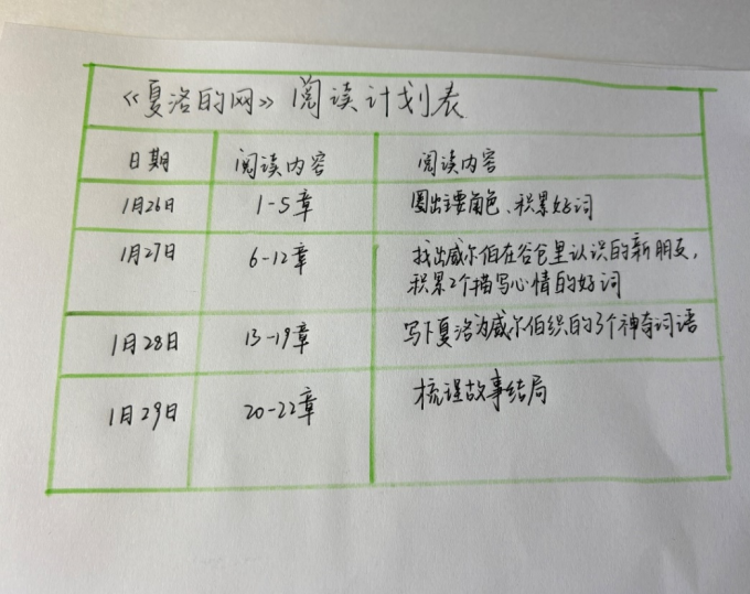 这次带领小学生共读《夏洛的网》,我逐段引导孩子理解情节,一起感受夏洛与威尔伯的真挚友谊。课堂上,她主动分享喜欢的段落,对生命与承诺提出天真疑问,我耐心解答并启发思考。看着孩子从被动阅读到主动品析,共情能力与表达欲明显提升,我倍感欣慰。这次一对一阅读指导既锻炼了我的文本解读能力,也让我懂得儿童阅读需共情陪伴,更体会到经典童书滋养心灵的力量。