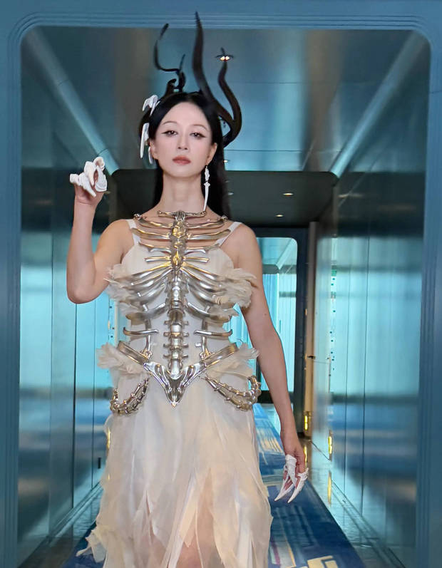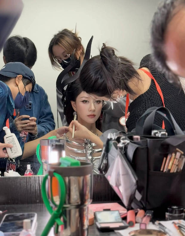 正在化妆的倪虹洁,颜值出众十分亮眼。