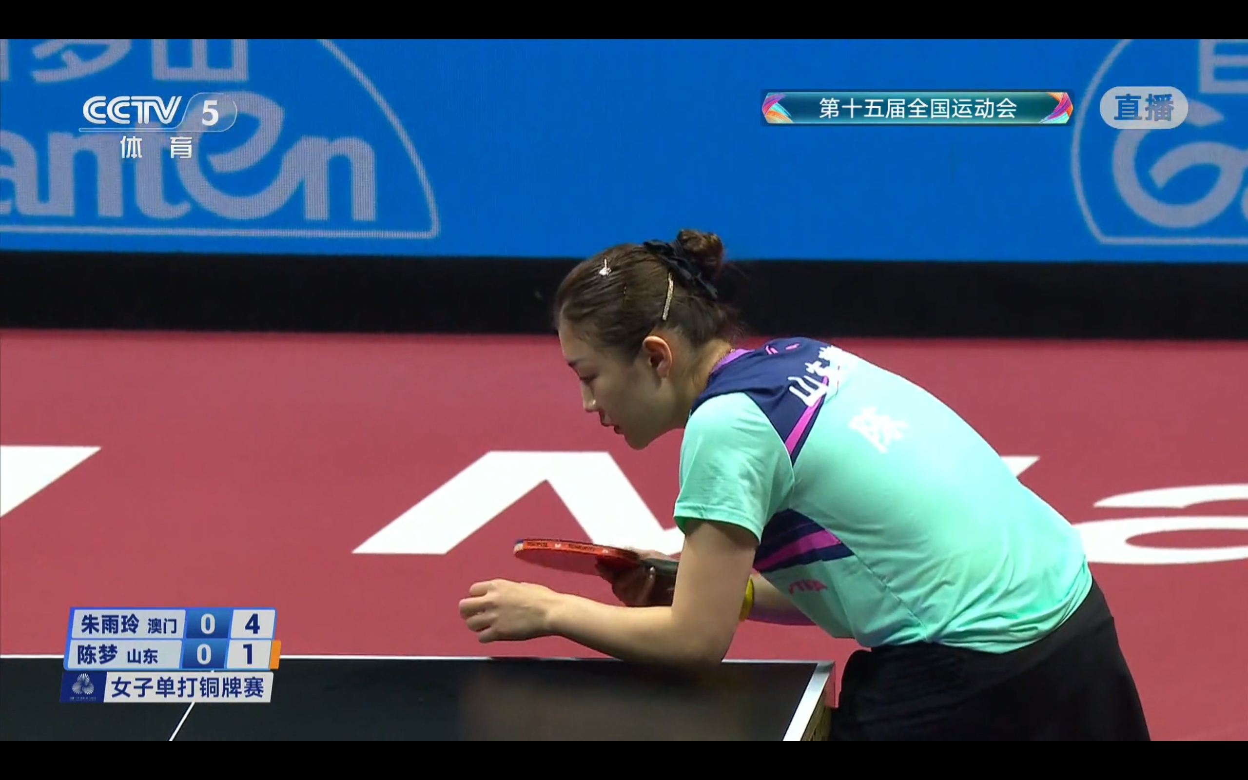 本场铜牌战采用七局四胜制,目前双方正在第一局的比赛,陈梦1-4落后朱雨玲。