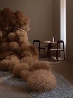 第三篇章是一座被自然气息包裹的“花园”。阳光从窗户洒入,品牌携手植物艺术家王紫用象征顽强生命力的风滚草共创大型装置《之间》,聚焦诸多充满张力的过渡瞬间——个体与社群的“之间”、自由与归属的“之间”、流动与安顿的“之间”。观者也被邀请在植物之间坐下来,享受“阳光森林浴”,喝杯令身心畅快的热茶,让身体成为感知的容器。“醒觉花园”是归途的终点,也是重生的起点:当人们跨越物种,以感官与自然深度联结,重新看见自然,也重新看见自己。