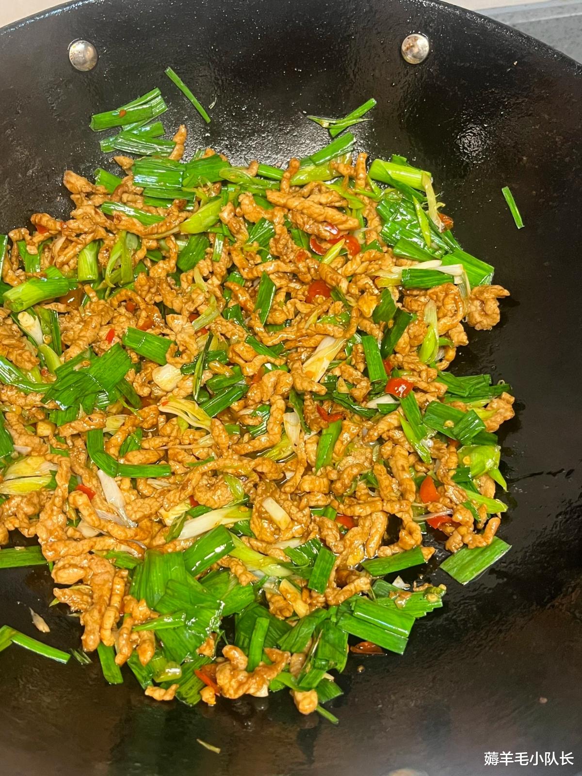 一道色香味俱全的蒜苗炒肉丝就大功告成啦!赶紧趁热尝尝,香辣可口的肉丝搭配着清香的蒜苗,绝对能满足你的味蕾!宝子们一定要试试看!