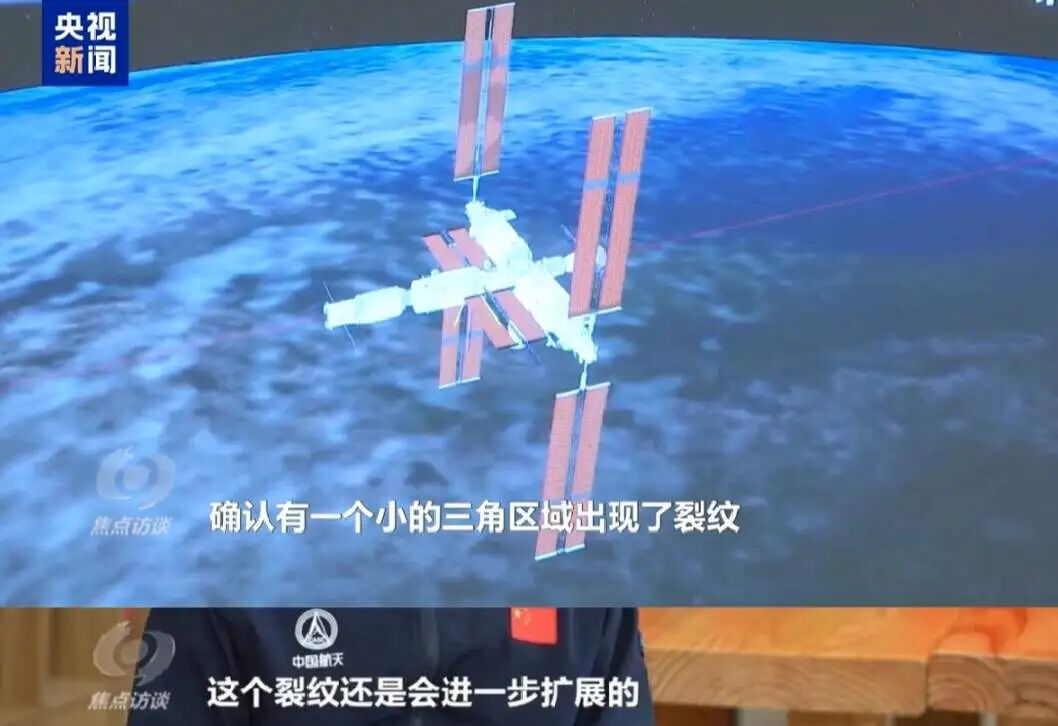 专家一鉴定,好家伙,疑似被太空里的小颗粒给撞出了三角形裂纹。安全第一嘛,飞船就推迟返航了,现在还在空间站待着呢。