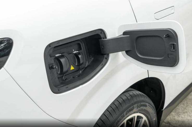车侧也带有一些细腻流畅的质感,侧裙被大面积防刮蹭饰板包围,观感简洁干练,前后轮拱则采用内凹式轮眉设计,配合18英寸多幅式轮圈,以及2735mm的轴距来看,整车比例协调舒展。车尾的设计在预料之中,贯穿式LED尾灯没有缺席,集成熏黑处理,搭配尾灯下方的“LEAPMOTOR”品牌英文标识来看,细节设计简约纯粹,迎合了年轻人的审美。不过,隐藏式门把手设计并不算友好,冬季寒冷的天气环境下可能会冻住影响出行便利性。