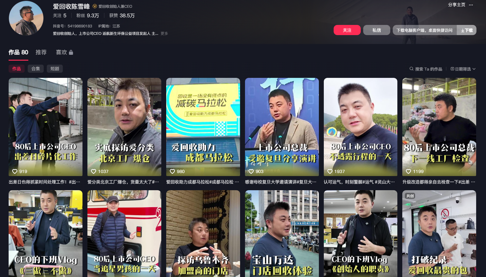 当雷军、周云杰等企业家纷纷开通视频平台账号,希望通过企业家IP实现助力业务增长。今年5月,爱回收创始人陈雪峰也开通了个人视频号,意想不到的是,帐号评论区充斥大量对爱回收的投诉。有吐槽回收压价的卖方,也有从爱回收买到质量差手机的买方,更有疑似员工直接点名管理层频频罚款且无明细等。最离谱的是,有消费者在爱回收购买1.6万元手机,最终被系统收取了16万元并晒出付款截图。陈雪峰回应道:“非常抱歉,我们内查整改。”