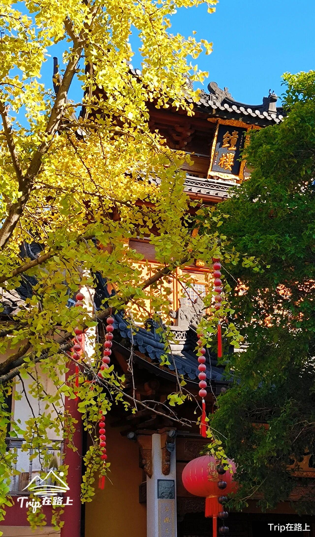漫步寺中,清代宝鼎足六角石狮子底座静静躺在角落,石上的磨损痕迹诉说着寺院的岁月故事。而大雄宝殿前的秋日古银杏在阳光照射下,更显禅意古韵。