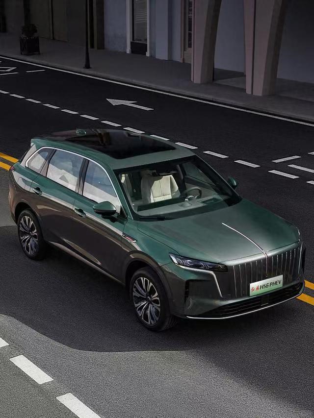 刚走进4S店,我就被红旗HS6 PHEV的个性东方美学设计惊艳到了。看着很大气,气场十足,但又不显太商务,特别适合家庭用。车身尺寸不小,长4925mm、宽1970mm、高1740mm,轴距有2925mm,放在中大型SUV里,这个尺寸也很有优势,看着就很舒展,不管是停在小区,还是开出去全家出游,都很得体。前脸是标志性的直瀑式格栅,搭配LED大灯组,一眼就能认出是红旗的车,辨识度很高。车身侧面的线条很流畅,没有多余的装饰,搭配铝合金轮毂,整体造型沉稳又大气,不张扬但有质感,车尾设计很简洁规整,LED尾灯点亮后效果不错,晚上开车辨识度也很高,挺引人注目的。