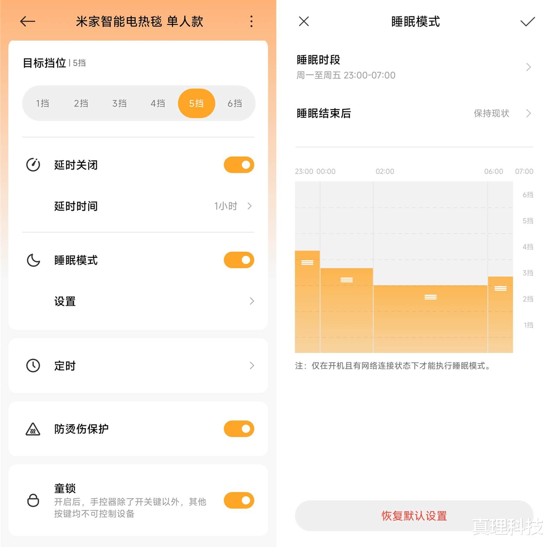 米家APP的智能睡眠调温功能,也是那些传统电热毯所比不了的。使用传统电热毯,要么是后半夜温度降了又冷,要么是一直高温睡到天亮口干舌燥。这款电热毯预设了分时温度,能根据睡眠不同时段的体感需求,提前预设温度,整夜都能保持舒适的温度,早上起来不会觉得冷,也不会因为过热而不舒服,真正做到了暖而不燥,酣然入梦。
