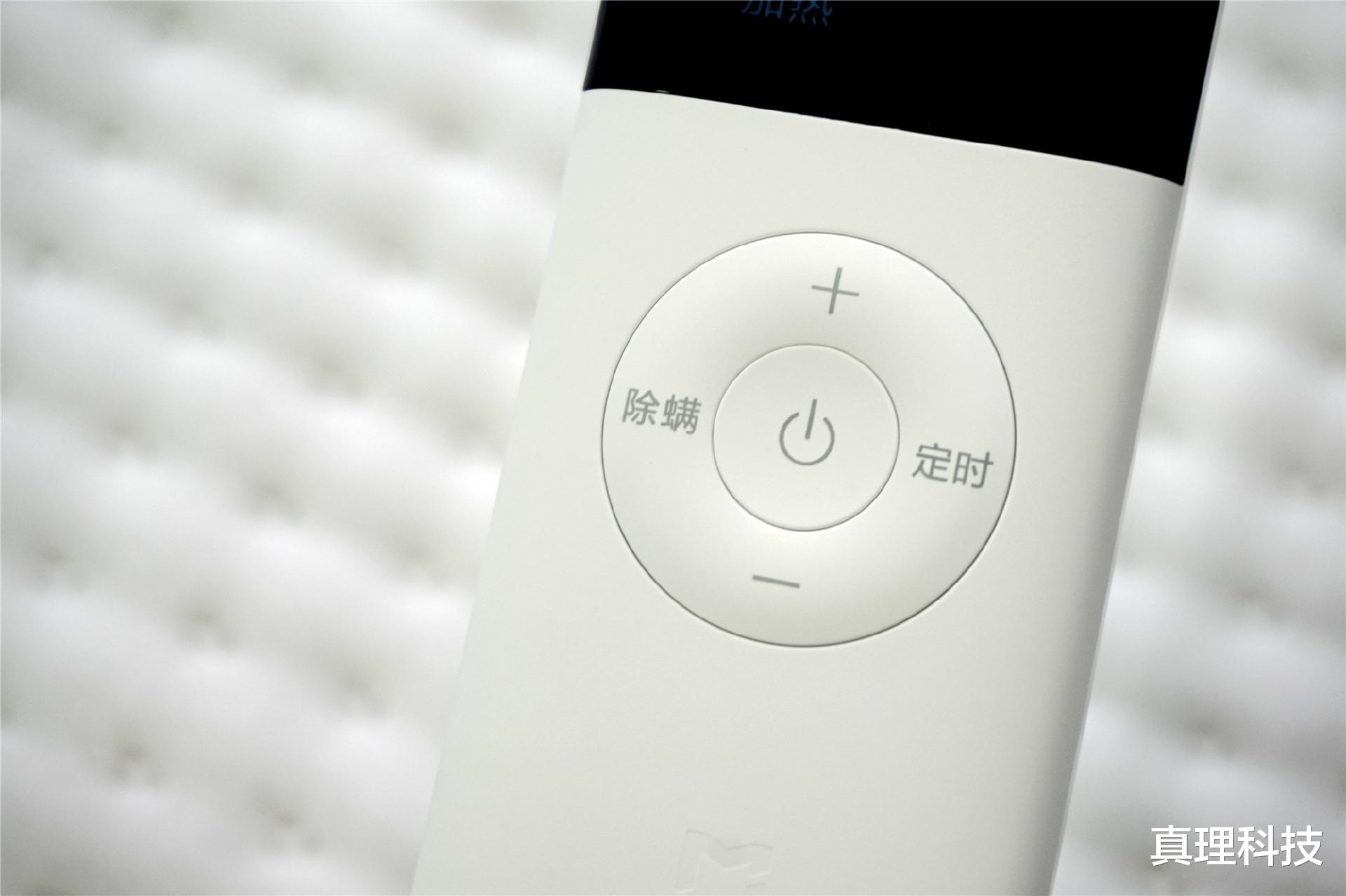 手控器是数显大屏,字体清晰,按钮布局简洁,只有开关键、档位调节、定时和除螨键,这几个按钮。平时想调温度,按几下就能搞定,大屏显示也很直观。