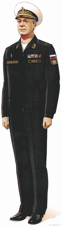 阅兵翻领礼服:是立领礼服出现之前,俄罗斯海军使用的阅兵礼服。翻领礼服为西装样式,翻领,双排扣。和立领礼服一样,也分为夏季白色和黑色两种样式,搭配和立领礼服一样。