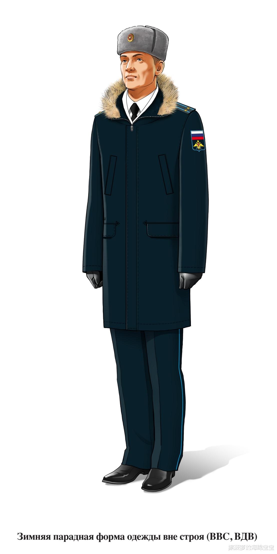 冬季大衣:冬季大衣的款式比较简单,共分为两种:不戴毛领大衣和带毛领的大衣。两款大衣都搭配大檐帽和毛绒帽(两边可下翻)。按照颜色划分,陆军为绿色;空天军和空降部队为深蓝色;海军为黑色。冬季大衣可以穿在礼服和常服外。