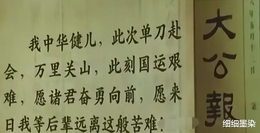 当时的报纸辛酸地写下:我中华健儿,此次单刀赴会万里关山,此刻国运艰难,愿诸君奋勇向前,愿来日我等后辈远离这般苦难。