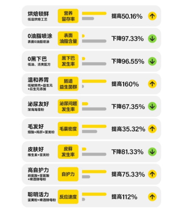 低温烘焙工艺,锁住营养:狗粮生产采用了创新的Bak3低温烘焙工艺,让鸡肉中的蛋白质、氨基酸、维生素等营养的留存度提升了50%,帮助狗狗更好地长肉。也让狗粮酥脆可口不油腻,鲜鸡肝和啤酒酵母的添加还能大大提高适口性。有铲屎官实测反馈,他们家挑食的狗狗也特别爱吃,肉肉长了两三斤!