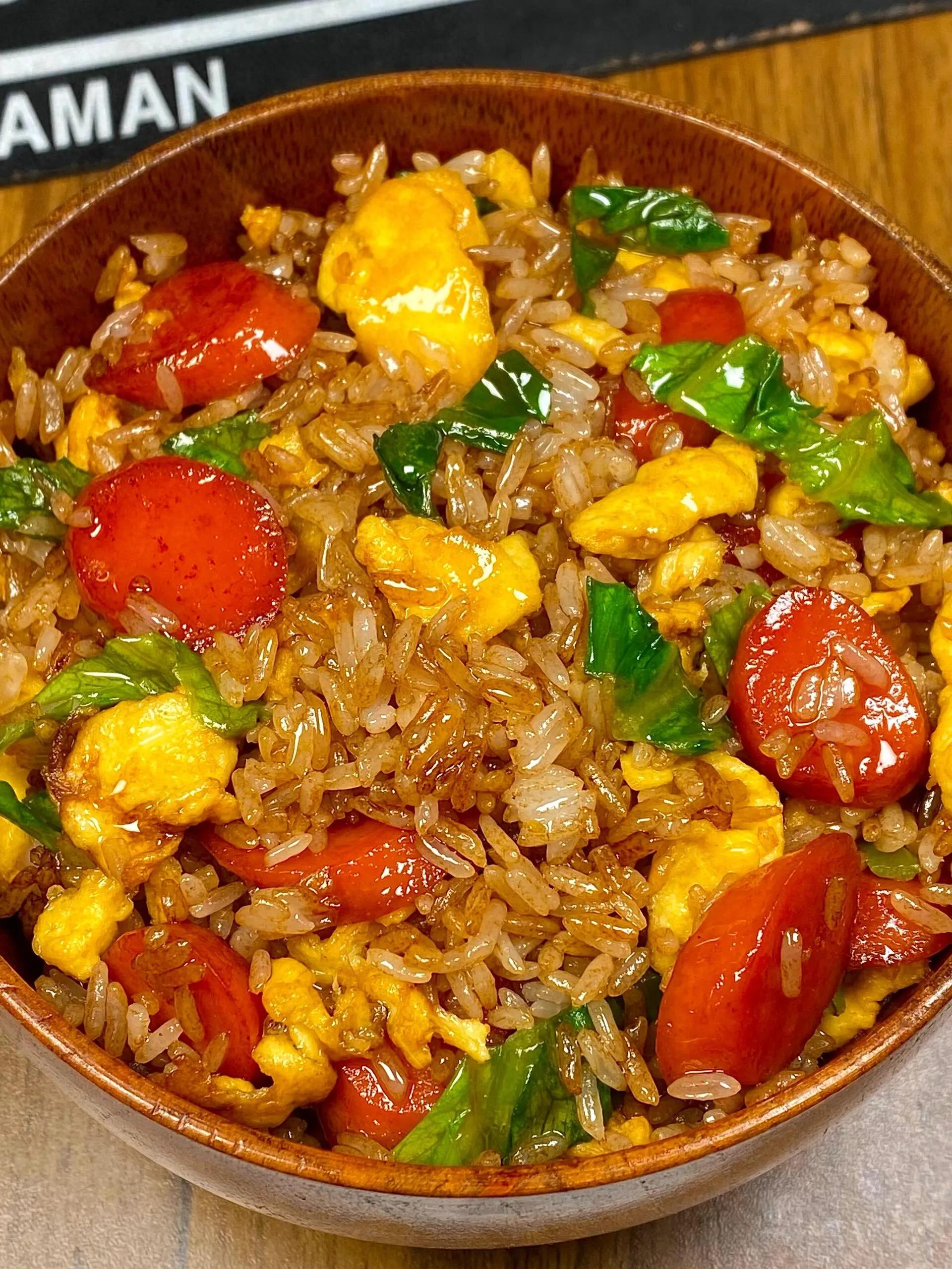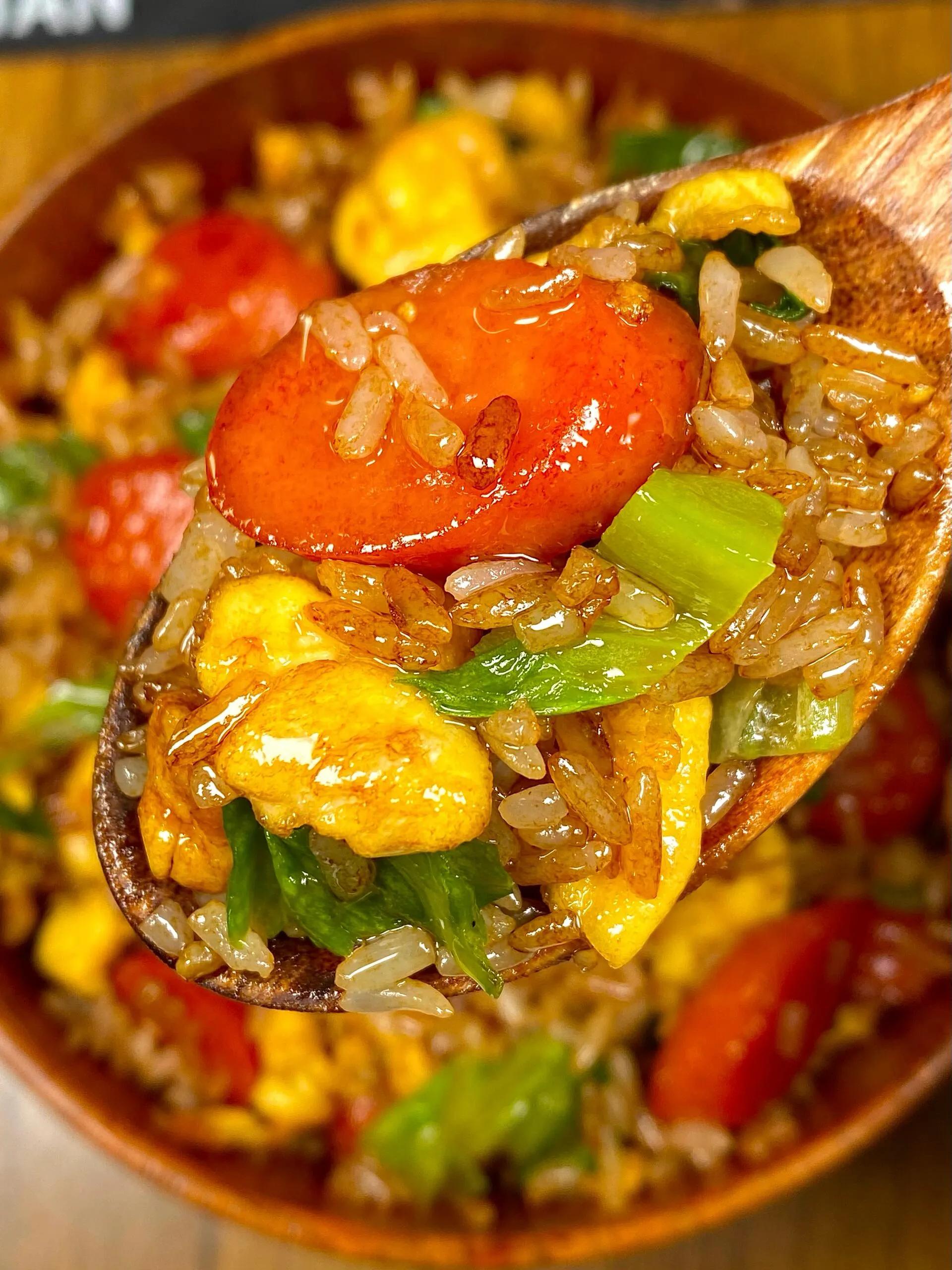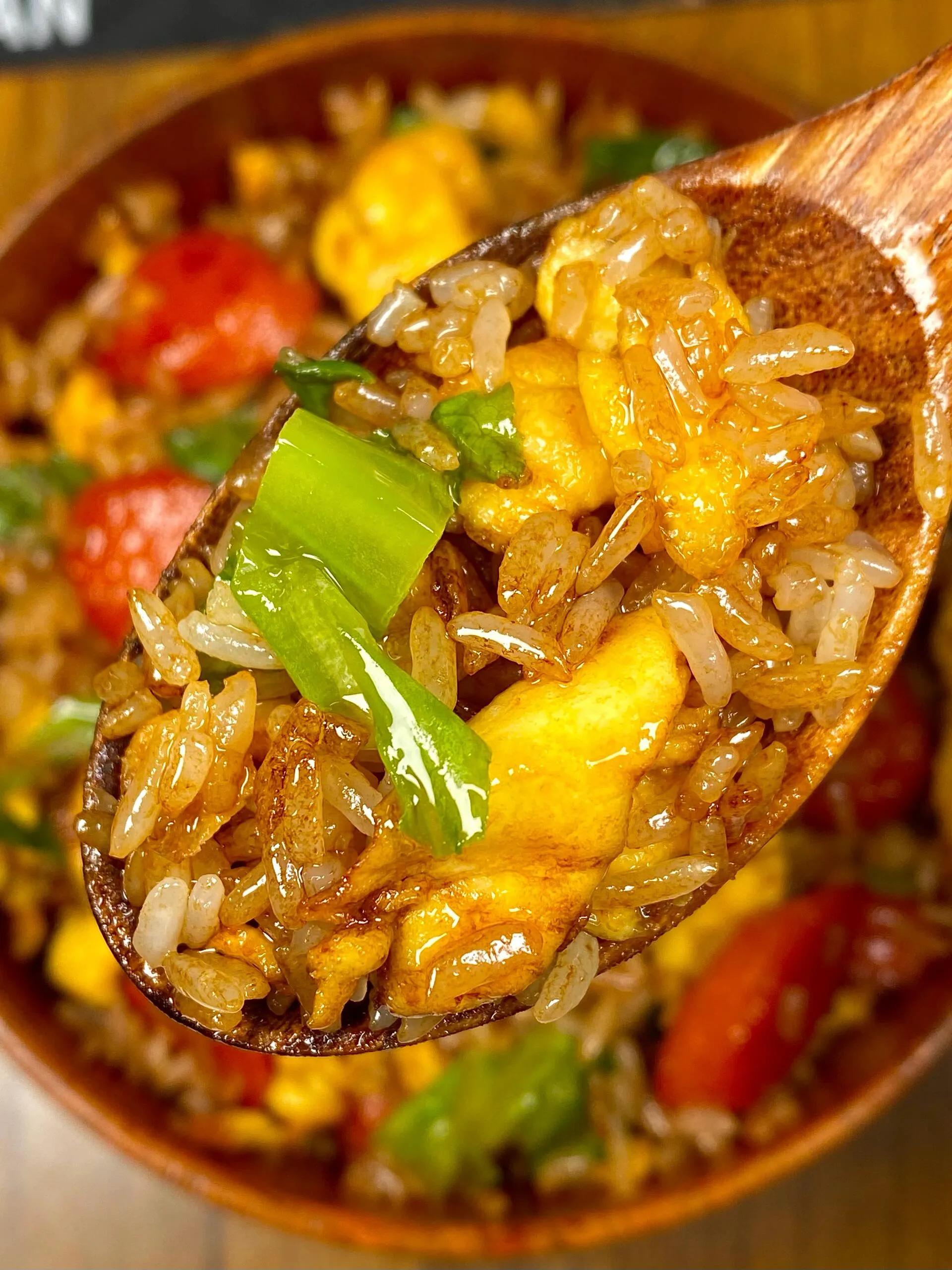 这碗生菜火腿蛋炒饭直接封神!金黄蓬松的鸡蛋裹着粒粒分明的米饭,焦香的火腿丁混着脆嫩的生菜,咸香中带着清爽,一口下去油润不腻,连干两碗都不过瘾!以前总觉得蛋炒饭是“随便糊弄的快餐”,直到解锁了这道家常进阶版,才发现普通食材只要用对技巧,就能吃出惊艳口感,厨房小白也能轻松拿捏~