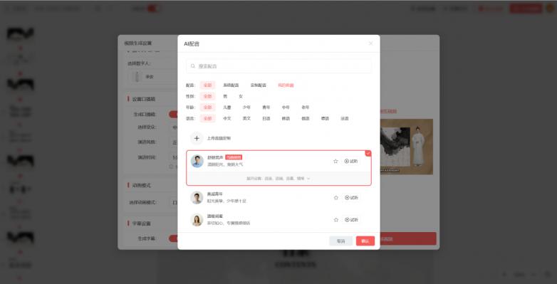 另外,工具还支持数字人和声音定制功能——可以上传自己的照片生成专属数字人,上传自己的录音定制专属讲解声音,让微课更有个人特色。不过需要提醒大家,定制功能的费用相对较高,如果不是有特殊需求,使用工具内置的数字人和声音就足够满足日常微课制作;若确实需要定制,建议上传清晰的正面照片和无杂音的音频,确保定制效果更佳。
