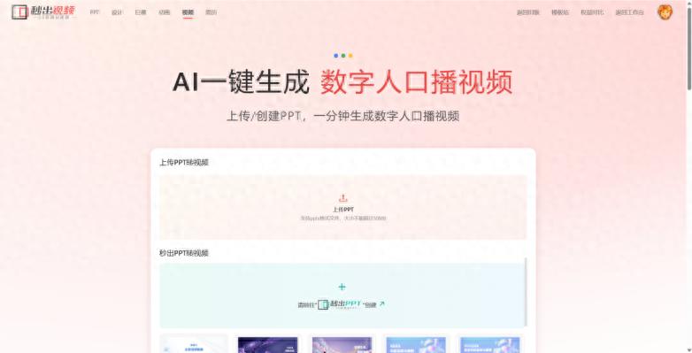首先打开AI数字人口播微课工具,进入首页后,我们有两种制作方式可选:一是上传自己提前准备好的PPT课件;