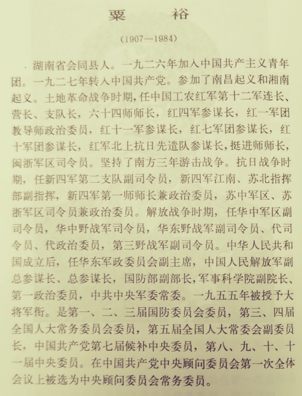 《中国人民解放军将帅名录》中粟裕大将的简介
