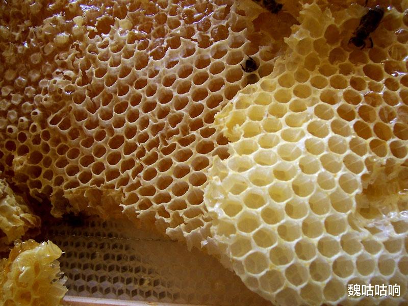 最后,这些浓缩后的精华被储存在六角形的蜡制蜂房里,进一步熟化。
