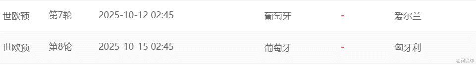 10月份葡萄牙赛程不错,两个对手是爱兰和匈牙利,但都是主场,无须来回奔波。