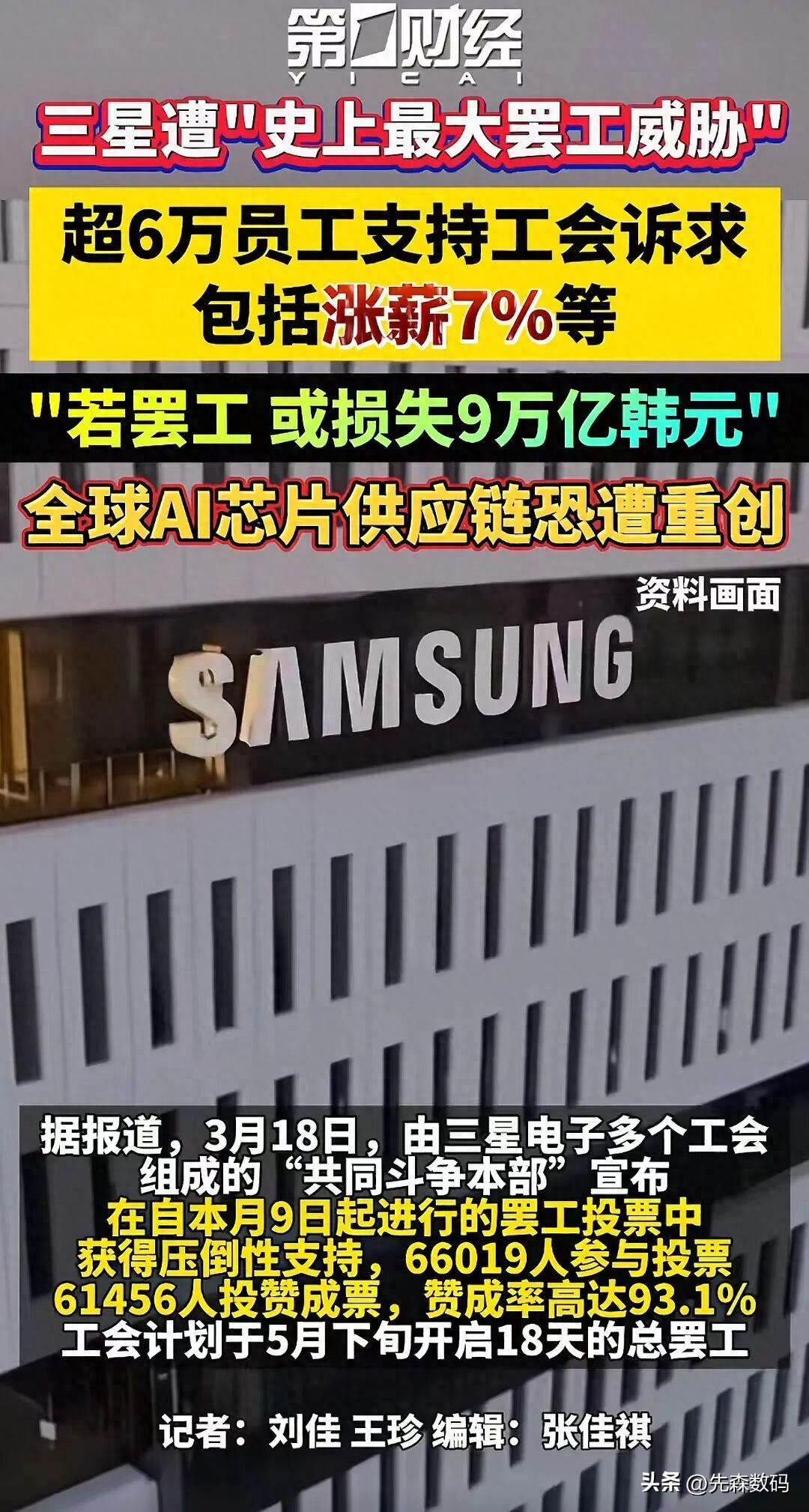 工会现在要求公司拿出20%的利润给员工发奖金,这个要求比海力士还狠,公司肯定不同意,直接谈崩。于是就有了开头的成员投票,6.6万人中93.1%的工会成员赞成罢工。