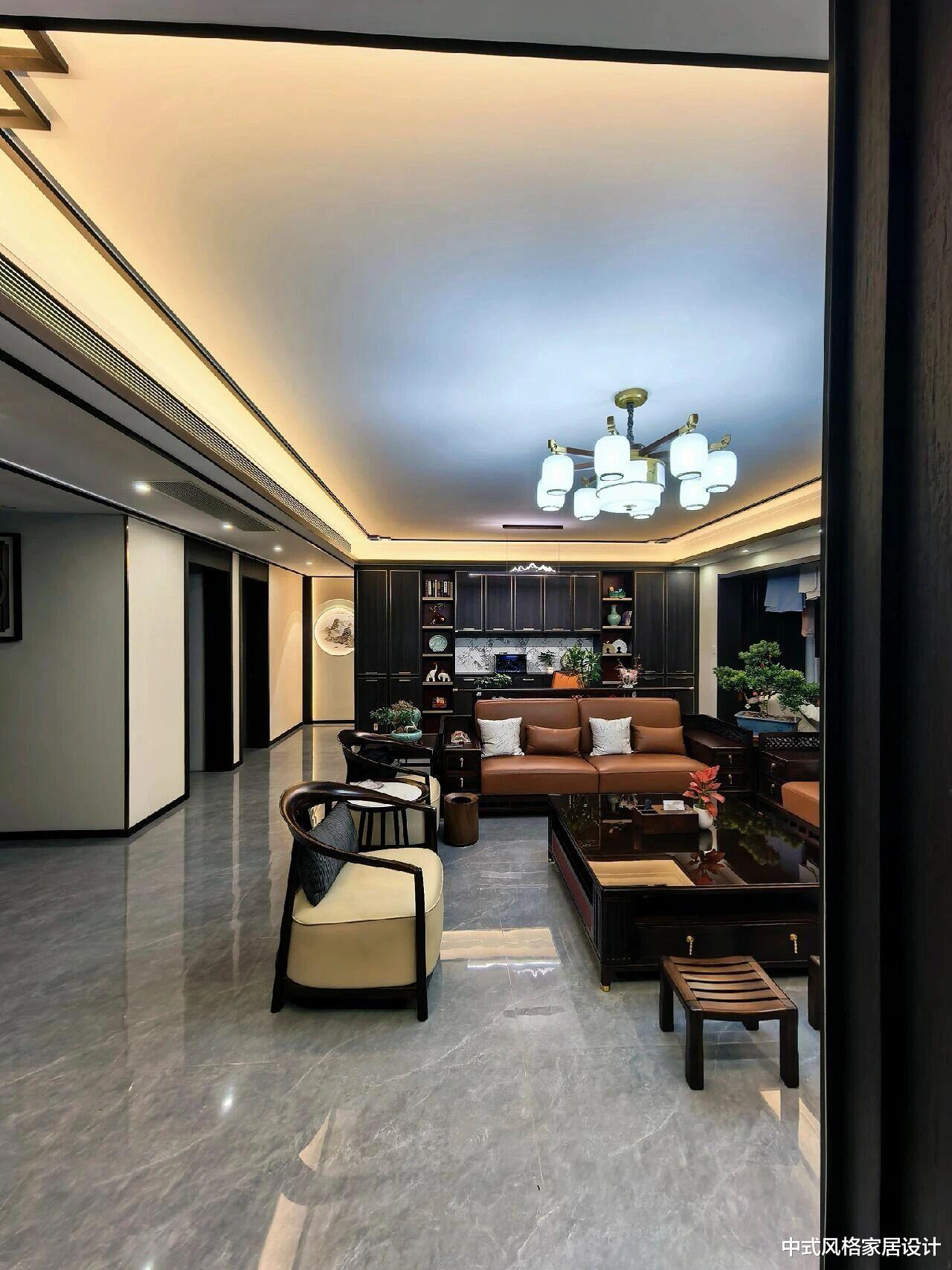 我选的风格偏现代中式:· 墙面以浅灰打底,搭配深胡桃木饰线条;· 家具摒弃繁复雕刻,保留明式骨架,用布艺软包提升舒适度;· 灯具、挂画等软装融入水墨元素,点到为止。关键在“取舍”:贵重的实木仅用于重点区域,普通空间用仿木纹砖;定制柜体采用环保板材,省钱也安心。