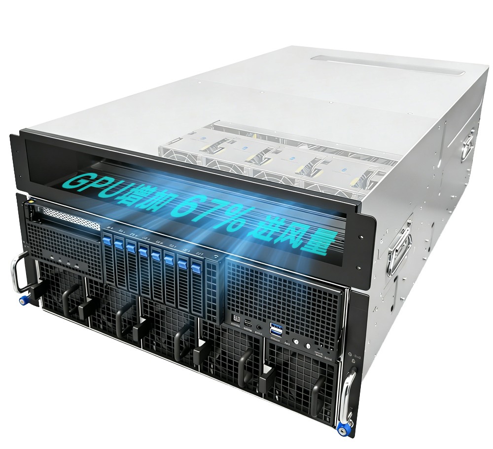 ESC8000A-E13-DR八卡GPU服务器是华硕数十年深耕服务器领域的技术积淀与对用户需求的深刻洞察。这款GPU服务器以“低温稳定”为核心设计理念,构建了全方位的高效散热体系,彰显了华硕深厚的产品研发实力。在散热结构设计上,采用分区独立风道设计,将CPU与GPU散热区域完全分离,避免热量交叉叠加,从根源上提升散热效率,这一设计思路与华硕GPU服务器一贯的散热优化逻辑一脉相承。同时,还为用户提供了易维护性,仅需短短三分钟即可完成PCIe设备安装或更换。
