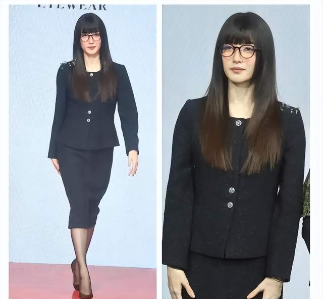 现场照片显示,她的脸颊有些浮肿,笑容略显不自然,整体造型被评像“高中英语老师”,与以往那个明艳的荧屏女神形象相差甚远。