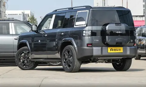 车辆侧面采用厢式设计,线条简洁,展现强烈的硬派肌肉感。配备20英寸运动轮毂,运动气息明显。车辆尺寸设计出色,车身长度达到了4999mm,宽度为1995mm,高度为1865mm,轴距为2920mm。这样的尺寸,加上方盒子的造型,让车辆看起来非常魁梧,不仅给消费者带来了硬汉的印象,还充分发挥了车内的使用空间。