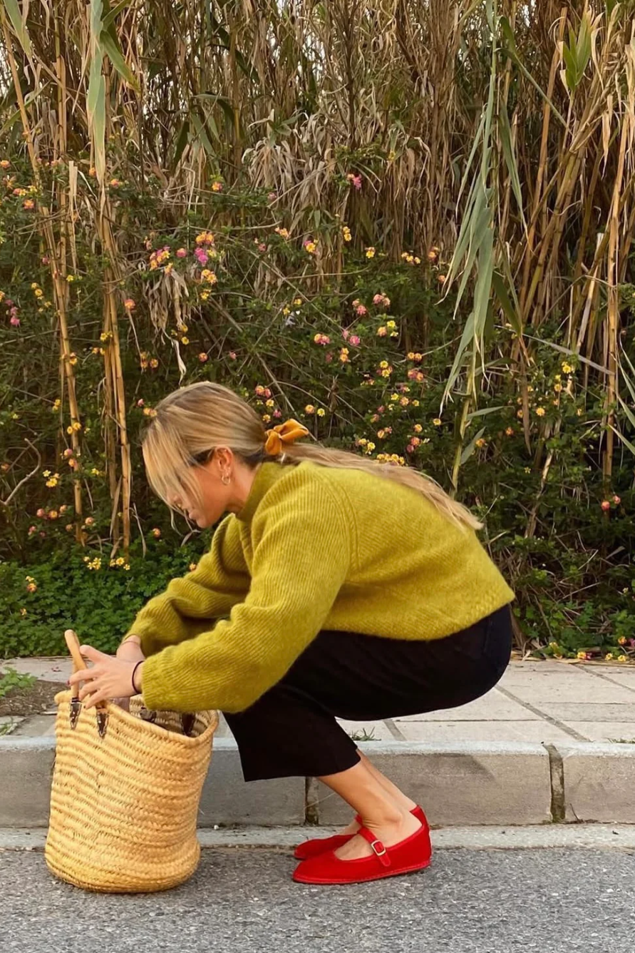 在丝绒玛丽珍鞋里,复古彩色款比基础色更有记忆点,尤其是墨绿色,简直是为秋天量身定制,上脚自带故事感。