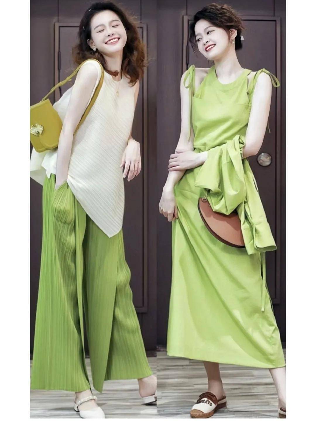 在炎热的夏天,穿牛油果绿的搭配,每一天都充满清爽与活力哦。