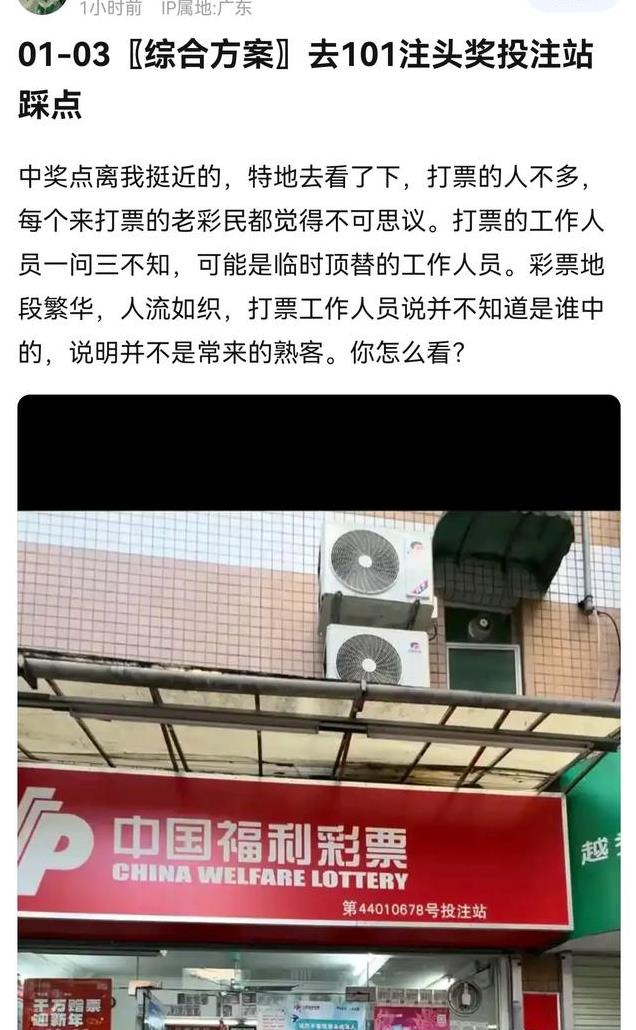 其中,一位当地的网友还亲自到彩票店沾沾喜气,并表示当地有人拿出了照片,表示这位中奖者是个大爷,当时进店还戴着口罩与鸭舌帽。从上面这张图片来看,确实有点像中了大奖,怕被人知道,然后低调现身彩票店。