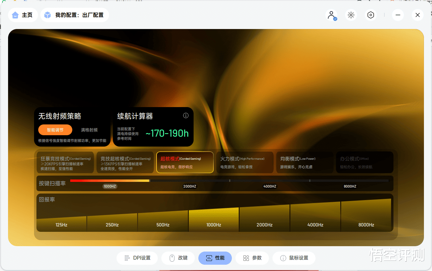 而不同的模式下,包括无线射频策略、引擎扫描帧速率、回报率都可以由用户来设定,不同的模式下续航计算器可以计算出参考的续航时间,非常智能。
