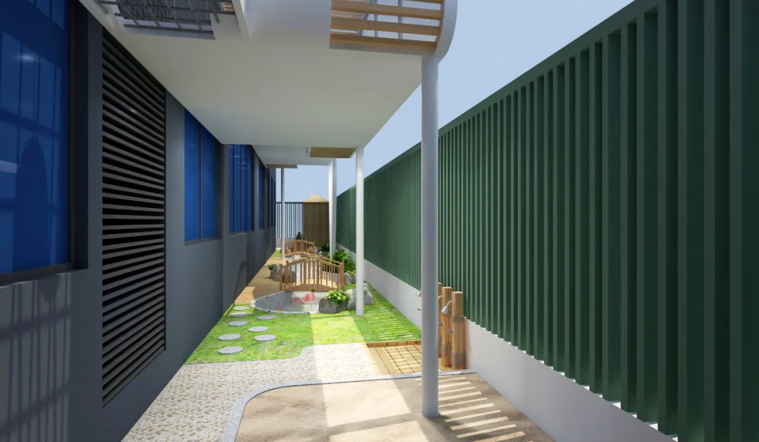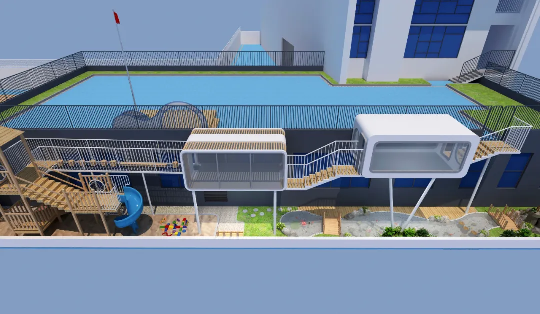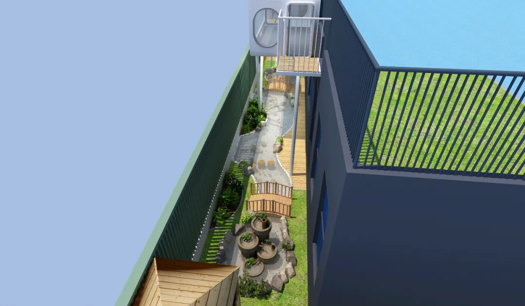 然而,在我们眼中,这个狭长的形态本身就是一个独特的机会。它不适合放置传统意义上庞大、臃肿的综合性玩具,但这恰恰为定制一个符合场地气质、能够引导孩子进行线性探索和深度游戏的“非标”装置提供了舞台。