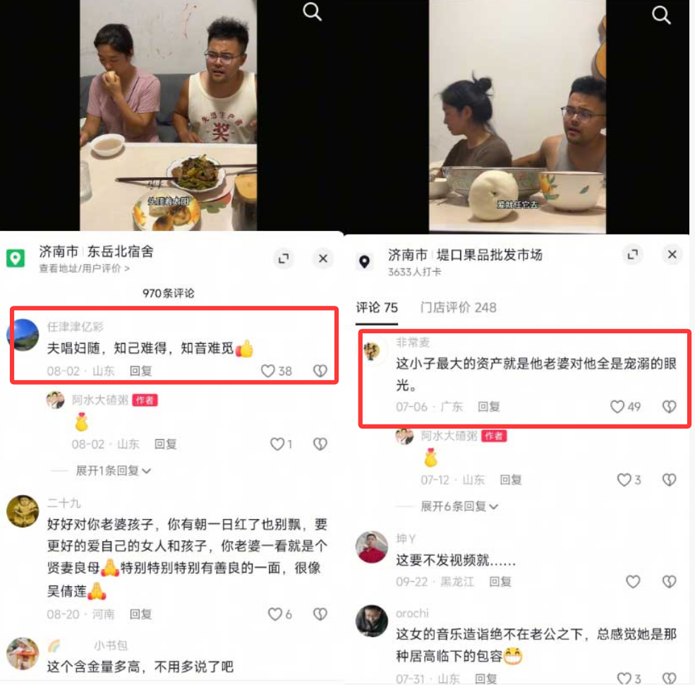 网上唱得比阿水好的人很多,为什么他却是一个独特的存在呢?正如网友“秦王绕柱”所说:不羡慕你唱歌好听,羡慕你有一个满眼都是你的媳妇!