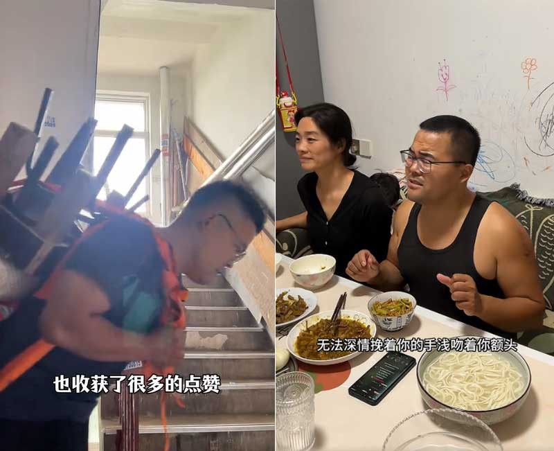 他称自己是一个在底层拼命挣扎的90后,视频中也能看出工作辛苦,其体力上的付出不是一般人能承受的。家里陈设简单,妻子衣着简朴,每天的菜品多样但都属家常。