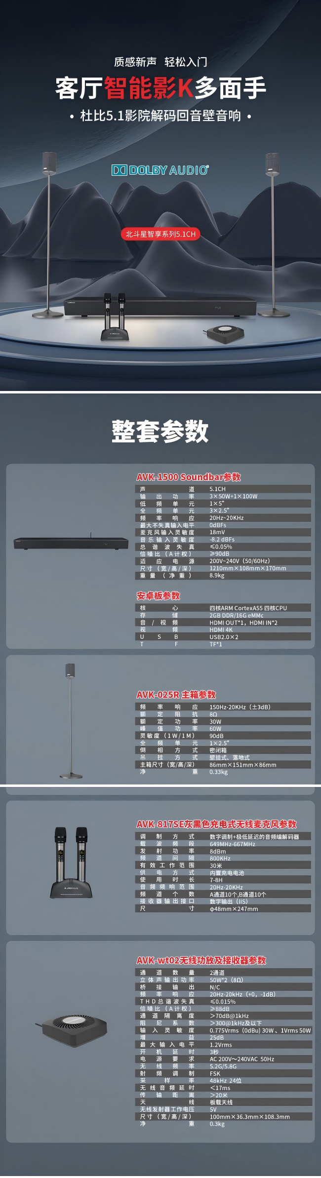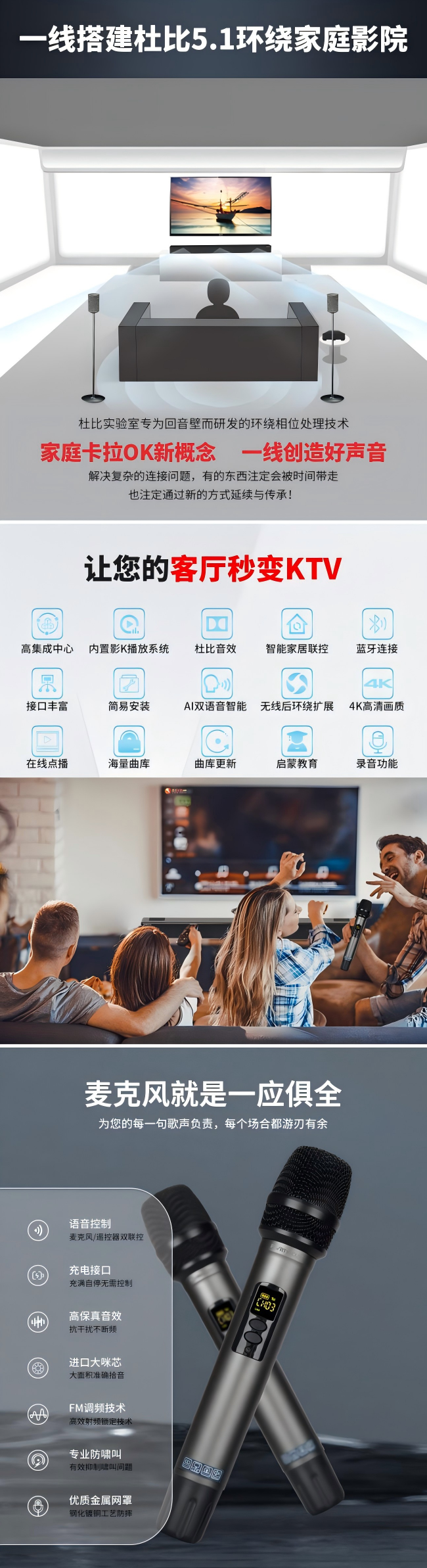 杜比实验室专为回音壁而研发的环绕相位处理技术,让声场指向更加精准;语音识别时会自动降低背景音量,确保指令准确接收;内置的海量正版资源,再也没有烦人的广告等待;RS232智能中控接口更可接入全屋智能系统,一句话就能调节灯光氛围,真正实现了“影院级体验”。