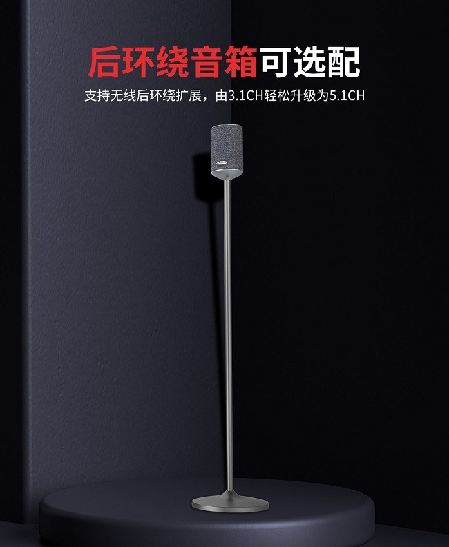 除了丰富的接口配置,最让我惊喜的是没有复杂的走线,回音壁一根线连接电视,接着只需搭载无线后环绕功放,再添加两个后环绕音箱,就能从3.1声道无损升级到真正的5.1环绕声系统,安装过程简单到让我怀疑:“这就完了?”