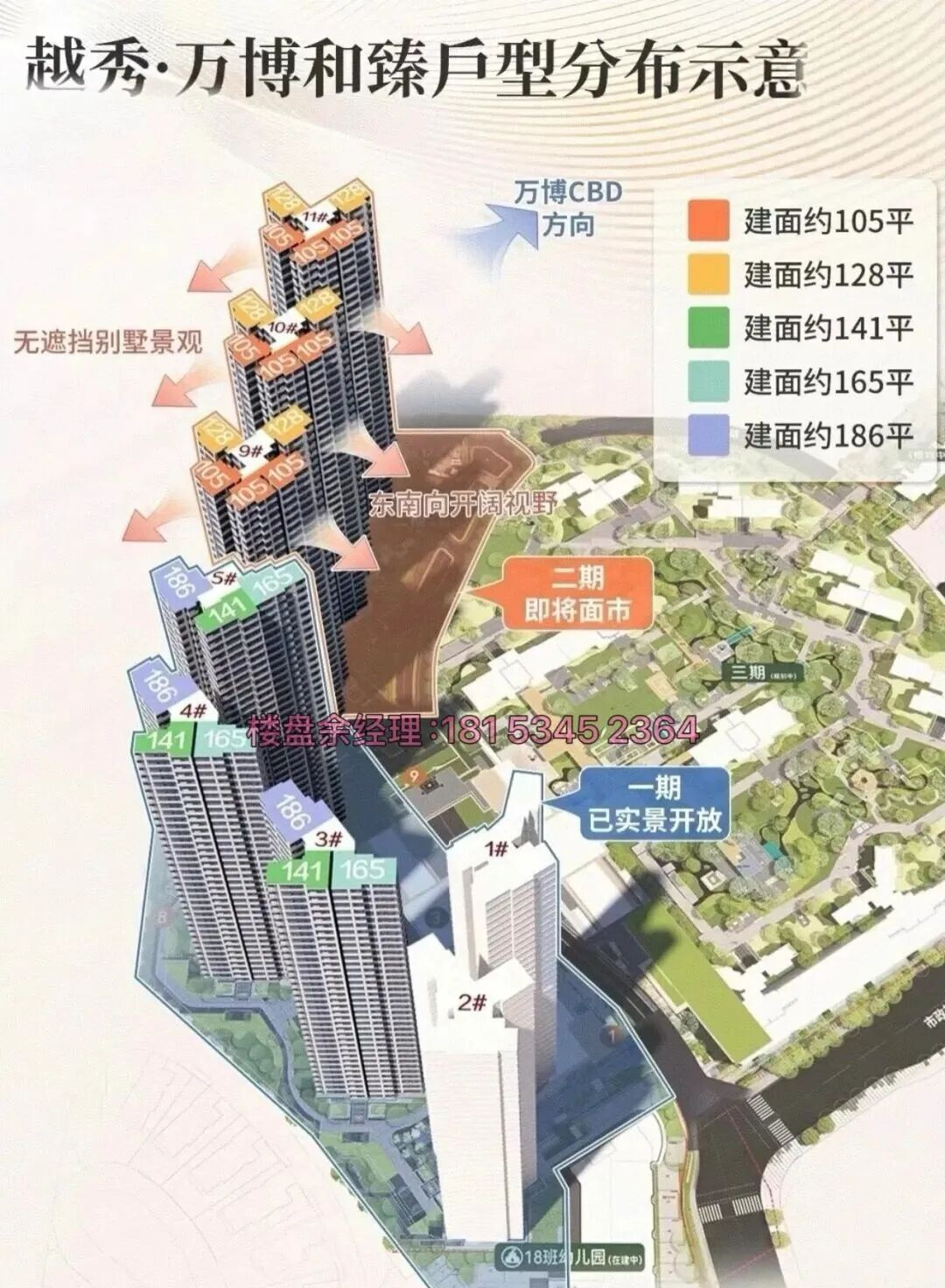 6、越秀万博和臻:加推二期最后一栋9号楼,105平总价44X万起、128平62X万起、141平68X万起、186平1000万起。