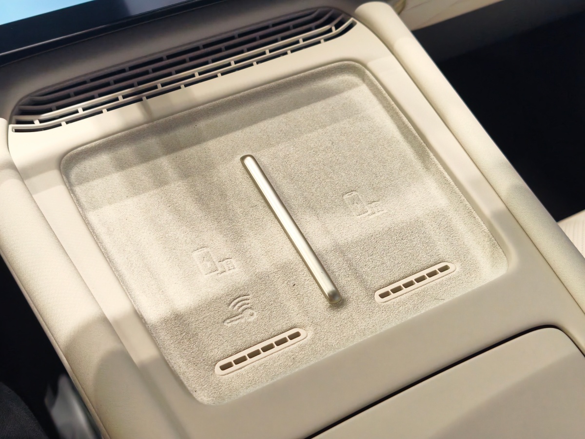 中控台配备双50W无线充电面板(支持15W反向充电),下方隐藏式储物格可容纳1.5L容积物品。中央扶手箱集成车载冰箱(-5℃-50℃温控),座椅靠背磁吸接口支持外接平板,后排可秒变移动办公空间。