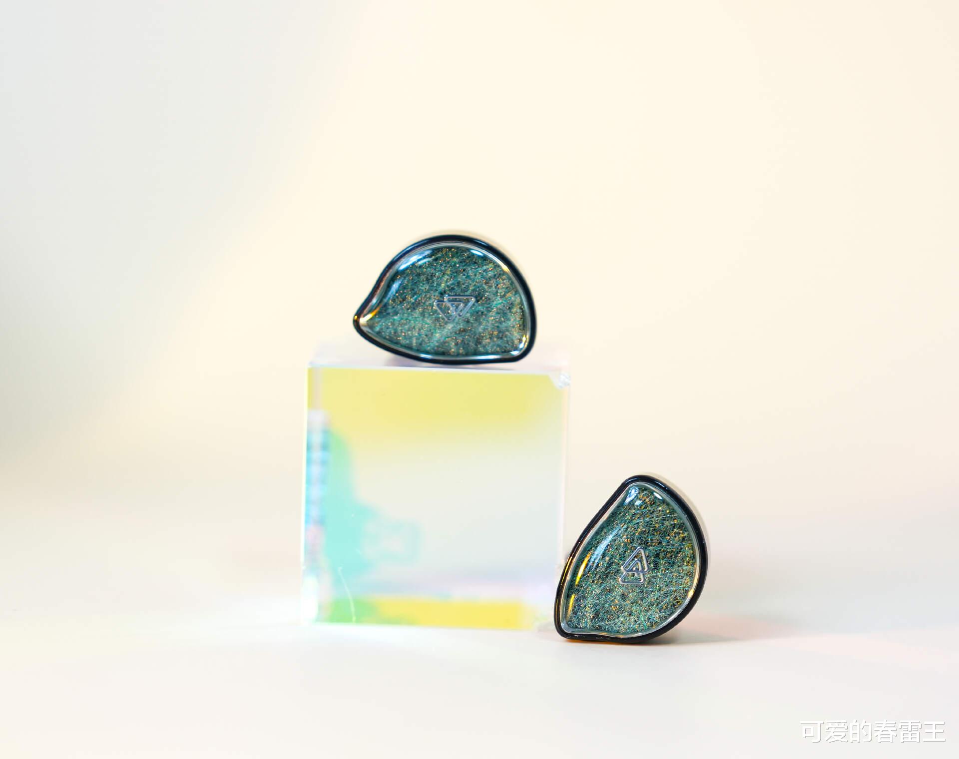 盒子比想象中小巧,打开后,耳机本体安安静静躺在里面。我选的是NI霓,第一眼的感觉很特别,是一种很耐看的、像玉石混合了极光粉末的质感。面板是那种带着细闪的云丝纹理,光线一照会有淡淡的光泽流动,在光线下有种温润如玉的通透感,很柔和,不张扬。腔体是树脂材质,拿在手里很轻,戴上后几乎没有存在感。对于我这种一戴就是几个小时的游戏党来说,这点太重要了。