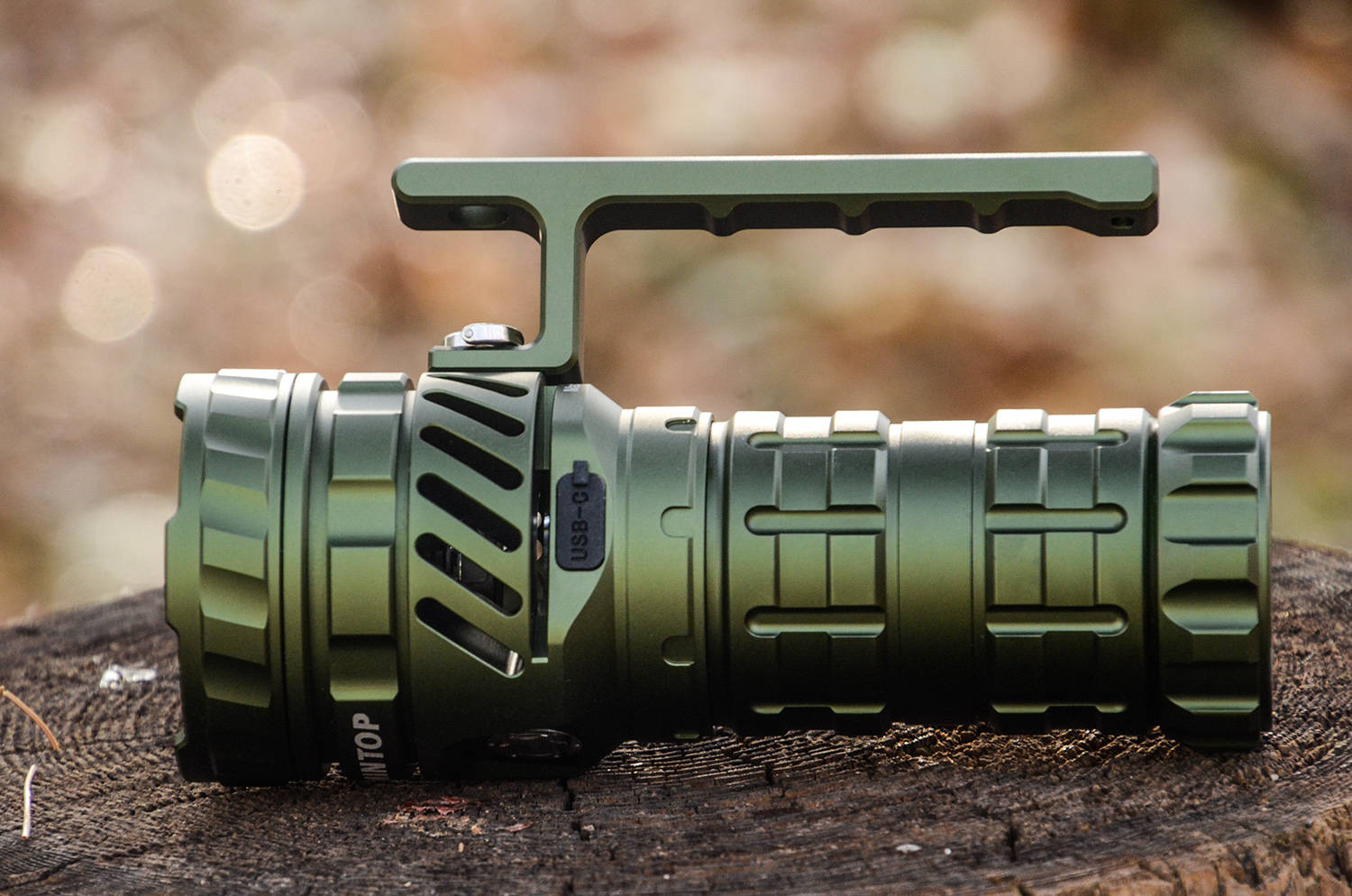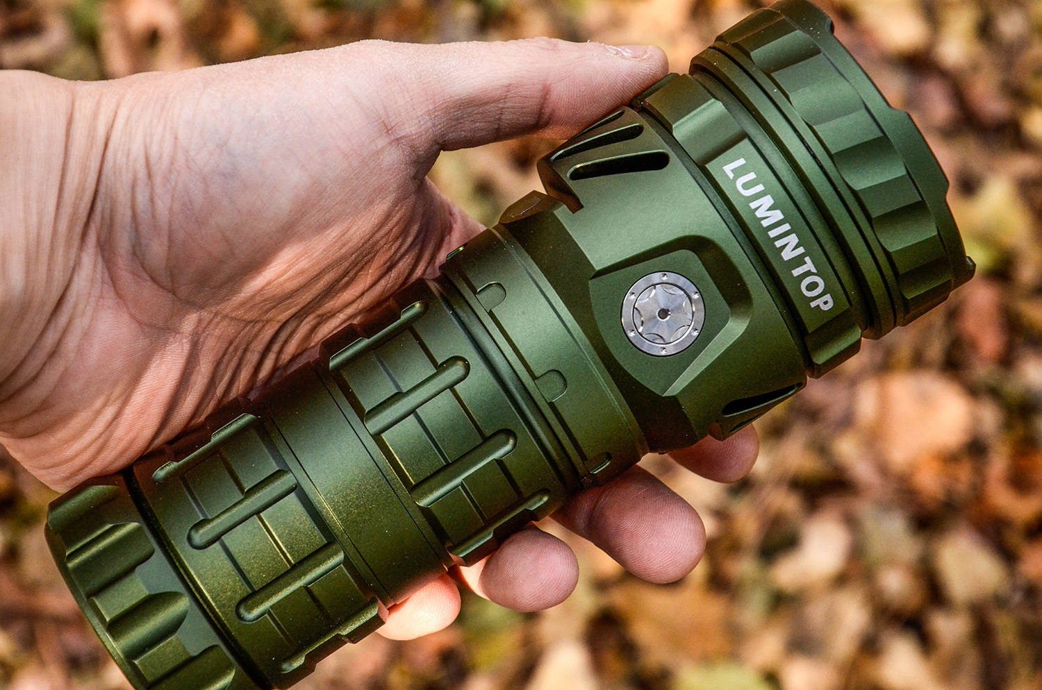 作为一款旗舰级别的高亮度手电,马赫5.0采用LUMINTOP一贯的侧按开关操作,开关位于灯颈正中,两边镂空的散热通道分列左右,开关刚好在内凹的平台之内,相当于有了定位。