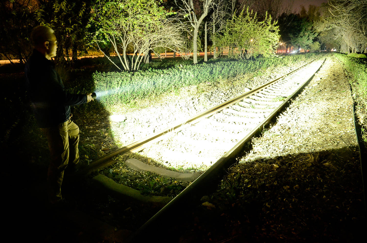 最大光通量为15000lm,中心光强达到36万坎德拉,我是找不到1.2公里的可拍照地点,就算找到了,我在晚上也看不到那么远,不过600多米的铁路尽头确实完全都被照亮,而且亮度的连贯性很好,从脚前一直到最远处都是亮的。