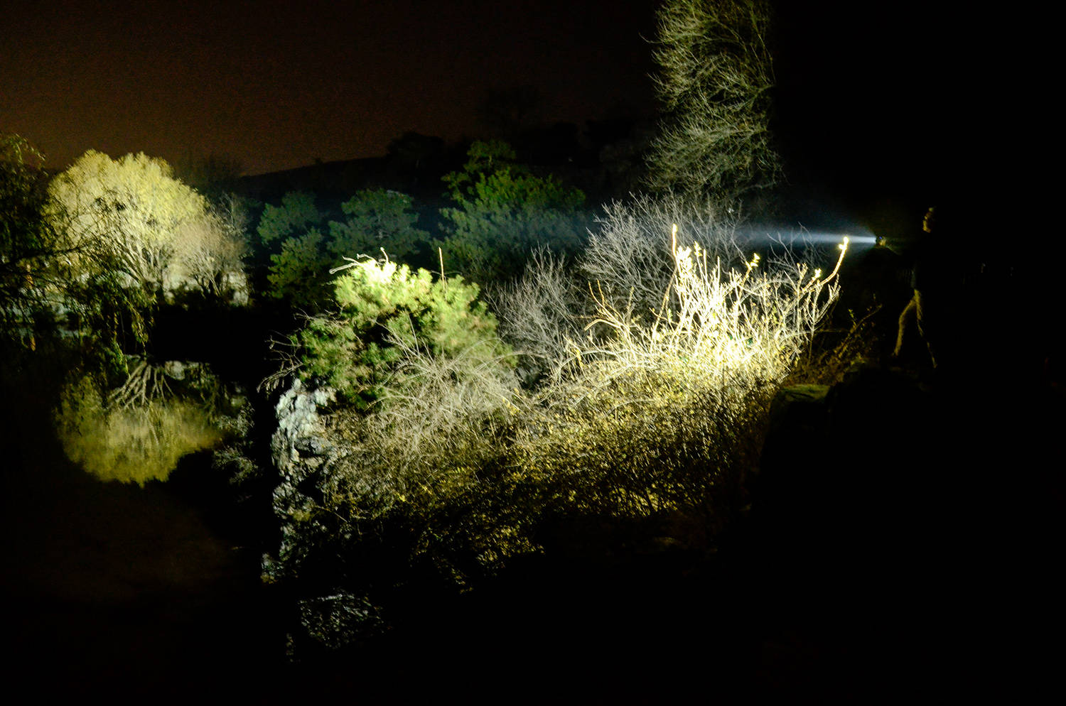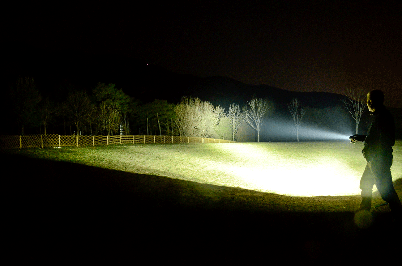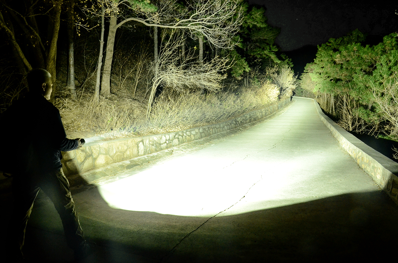 实际使用起来确实得心应手,亮度完全打破黑夜,聚光的亮度高、而且距离远,便于使用者观察远距离目标,泛光形成大范围的明亮区域,开阔人的视野,便于大范围搜索。