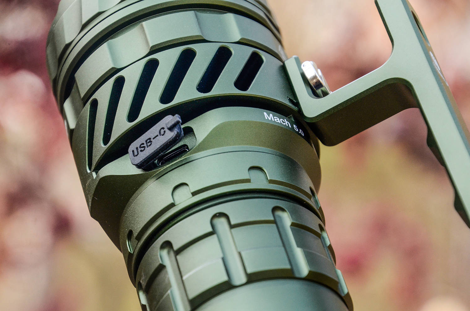 手柄的安装孔为标准3/8螺纹,可以将马赫5.0固定在三脚架上,就形成了稳定、固定的定点照明探照灯,可以补光、可以户外工作、可以定位搜索,进一步拓展使用性能。