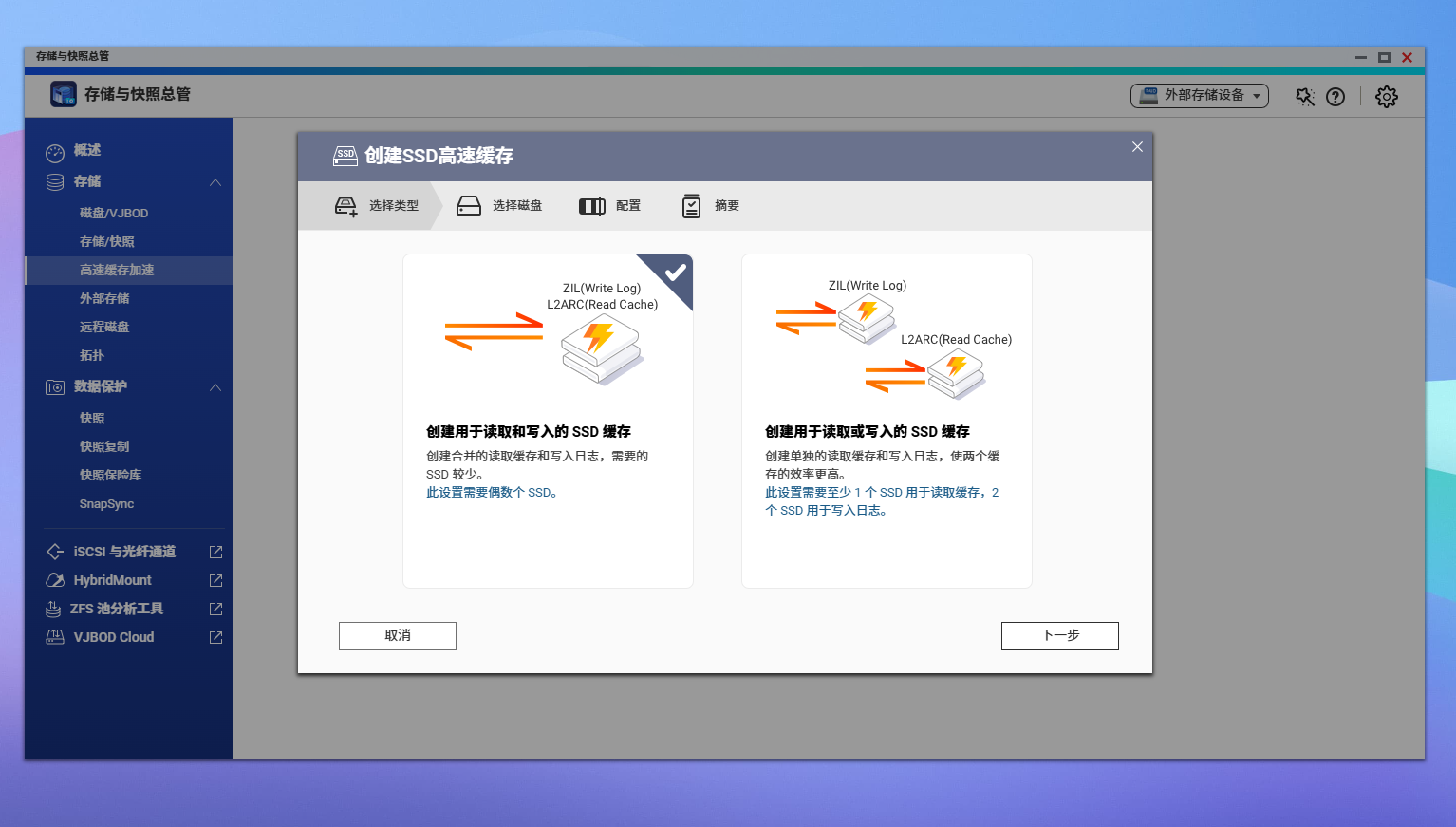 在 QuTS Hero 系统 中,高速缓存(Cache Acceleration)是影响性能表现的关键因素之一。它通过在传统机械硬盘阵列(HDD RAID)与系统之间建立一层高速的 SSD 缓存区,形成“加速中枢”,显著提升 I/O 效率。当系统面对频繁的读写请求或小文件访问时,SSD 缓存能迅速响应,大幅减少磁盘寻址时间,从而加快整体处理速度。这种架构的引入,让 NAS 在文件共享、数据库读取、视频剪辑等多线程应用中都能获得质的飞跃。